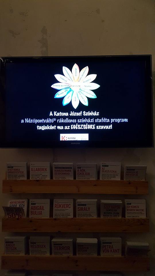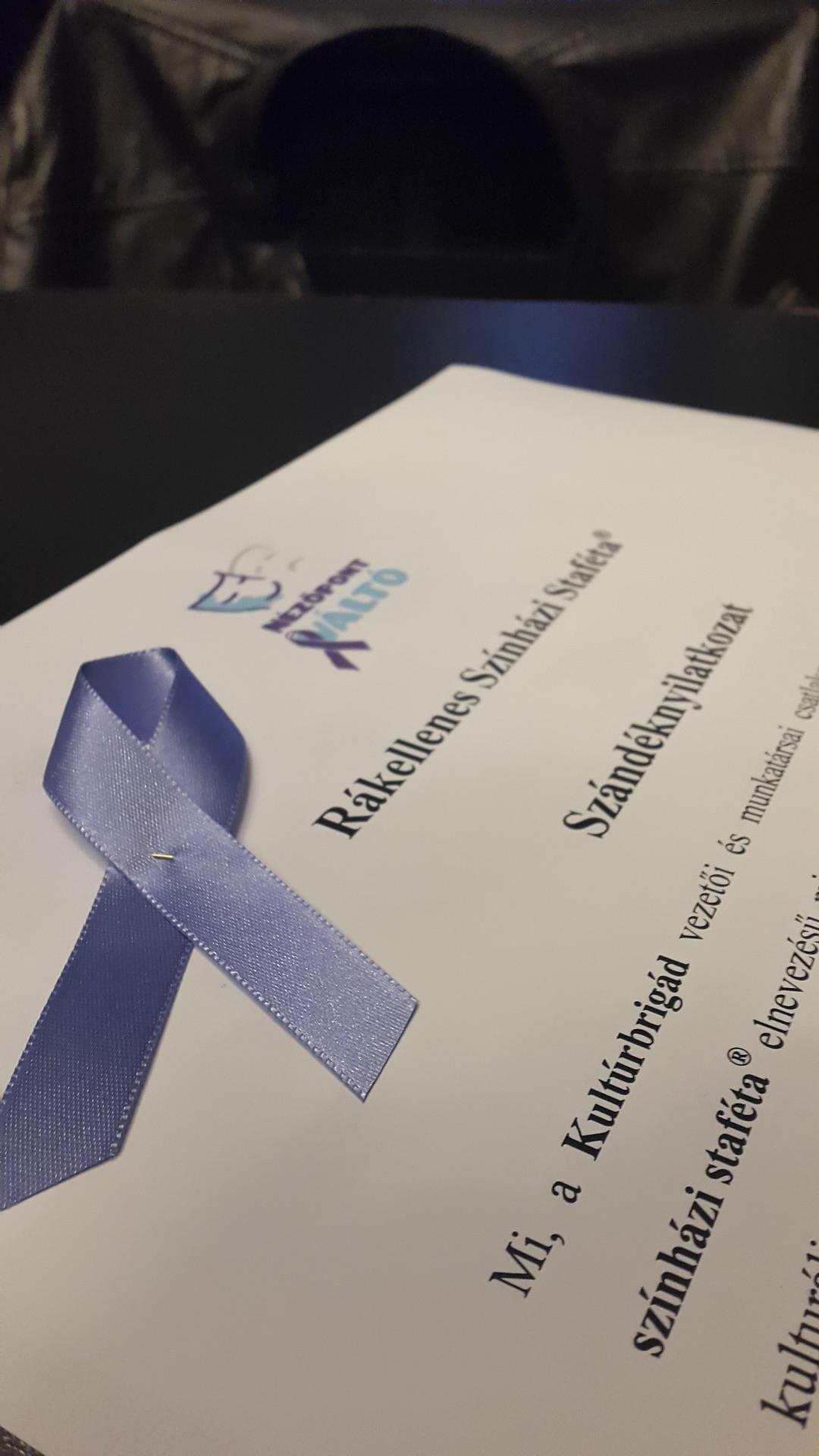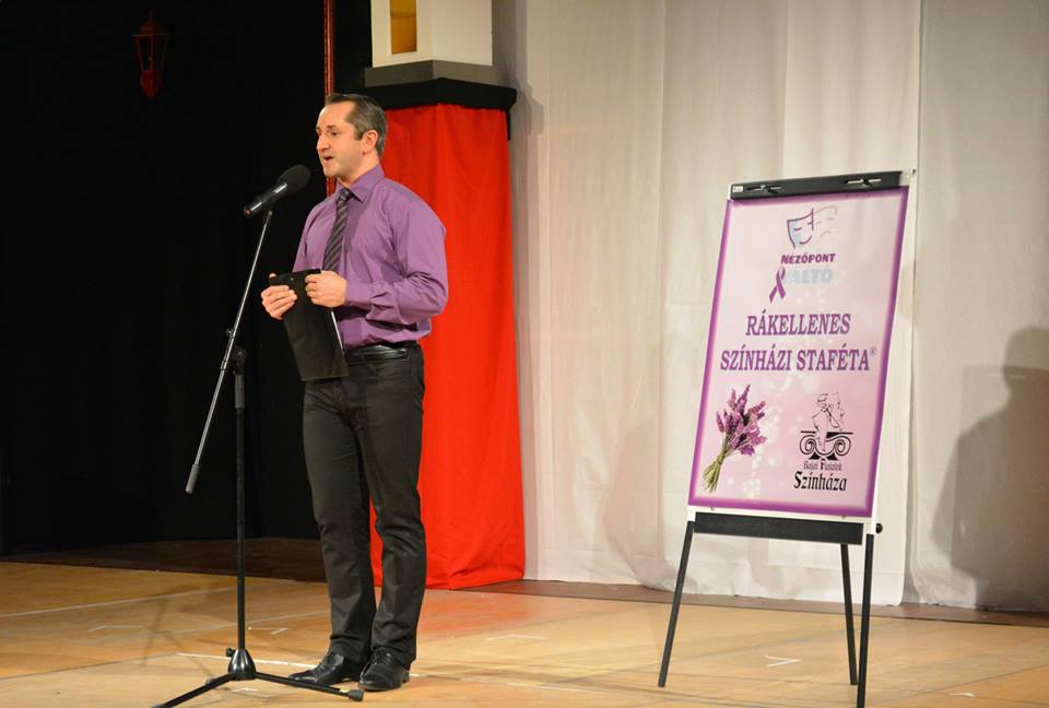 A rákellenes színházi staféta új megállójához, a Karinthy Színházhoz érkezett, ahol a Nézőpontváltó-esten a színház művészei és munkatársai feltűzték az összes rákbetegésg elleni küzdelmet jelképező levendula színű szalagot, majd Karinthy Márton igazgató felolvasta a rákellenes nyilatkozatot.