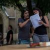 - július vége, nyári izzás a Felszabon. Egyszer csak megjelenik, egy kislány a karjában, egy nagyobbat kézen fogva vezet, máskülönben ugyanolyan, mint harminchat éve, vállig érő fekete haj, lobogó szem. A kislányai kedvéért a Károlyi-kert egyik padjára telepszünk játszóterezési, és az új filmje miatt interjúkészítési szándékkal, amit rendre meg-megtörnek a kislányok apjukat játékba bevonni kívánó cselvetései.